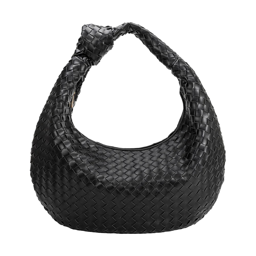 It's finally here, our extra-large woven shoulder bag, Katherine! With a soft woven exterior and spacious interior, this bag combines style and functionality. It meets all your needs for your commute to the office or campus and features a padded sleeve to protect your laptop while on the go.